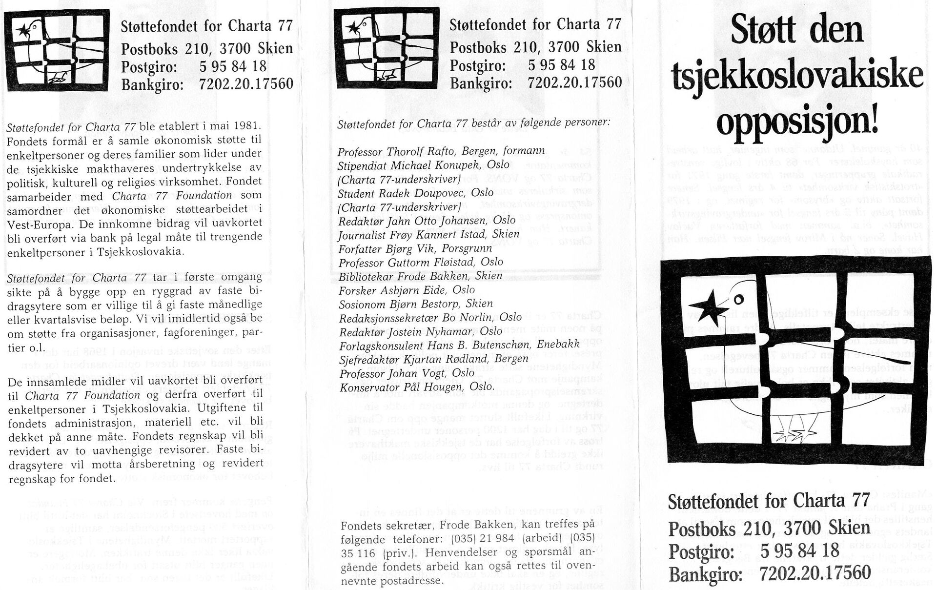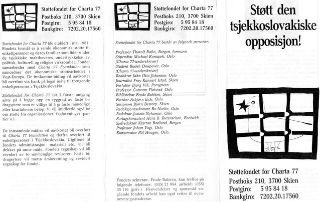 Zvlášť uváděl Františka Janoucha, který se podle něj podílel na shromažďování finančních prostředků. Janouch však nikdy netajil, k jakým účelům byly peníze použity. Kromě podpory disidentů a jejich rodin sloužily také k vydávání českých knih v zahraničí a k technickým projektům. Do Československa se posílaly například magnetofony, videoprojektory nebo počítače s tiskárnami.