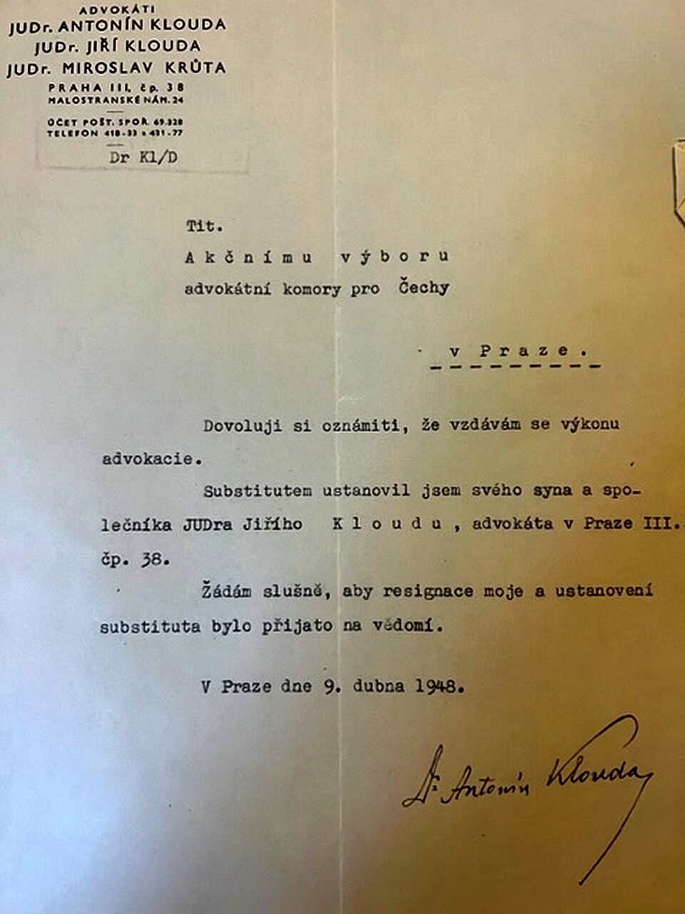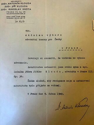 Rodinná advokátní kancelář JUDr. Antonína Kloudy byla mnohdy pokládána za „bílou vránu“ mezi ostatními kancelářemi. Často totiž spíše pomáhala klientům v nesnázích, než aby zastupovala ve výnosných případech.